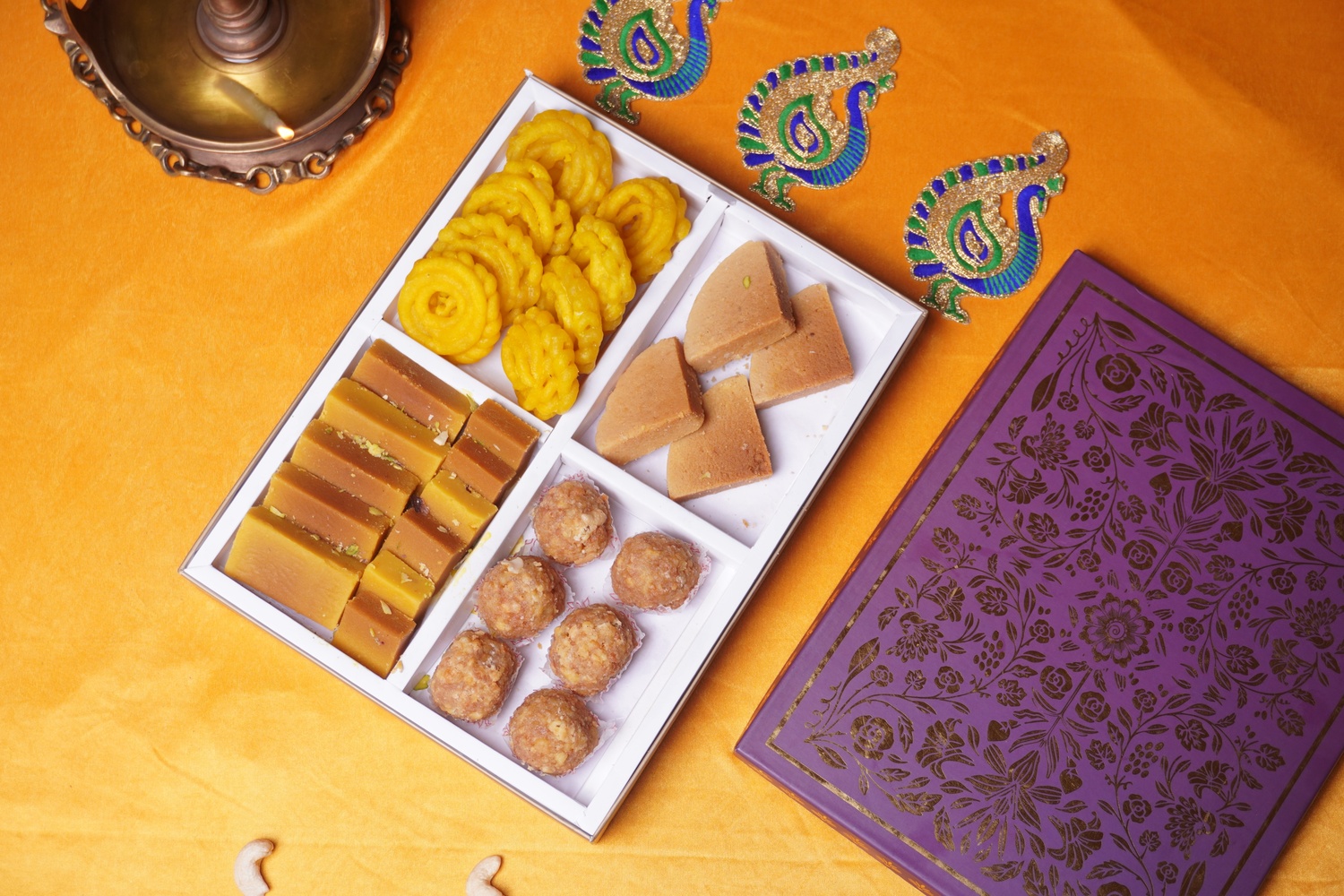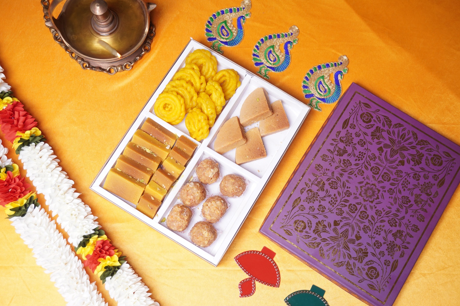 Celebrate the Festival of Lights with a taste of tradition. Our Shubh Diwali Mithai Box is a curated collection of authentic Indian sweets, beautifully presented in an elegant festive box. The perfect way to share joy and sweetness with your loved ones.